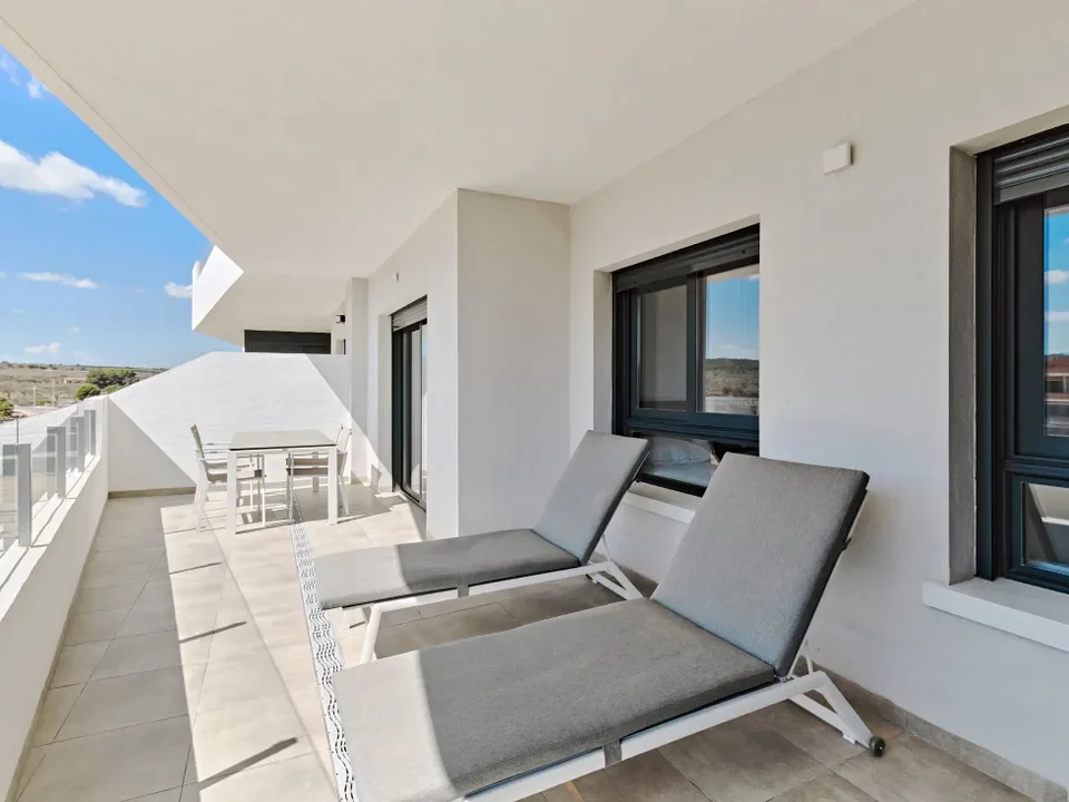 Discover this luxurious and contemporary 3rd-floor apartment featuring 2 bedrooms and 2 bathrooms. Designed for comfort and style, the property boasts a spacious south-facing terrace with breathtaking views of the surrounding natural landscape.